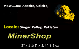 A nice sized piece of uv reactive apatite with a bright yellow fluorescent color under both shortwave UV and longwave UV.